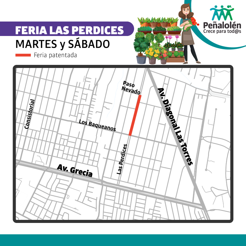 El comercio formal de feria libre y persa es el que se ejerce en la vía pública o recintos públicos en días, horas y lugares que autorice la Municipalidad de Peñalolén entre productores o intermediarios y consumidores.